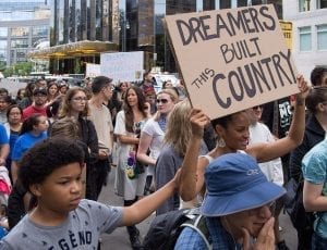 New Yorkers in favor of restoring protections for DACA recipients gather in Columbus Square in September 2017. Image via Rhododendrites/Wikimedia Commons. (CCA-BY-4.0)