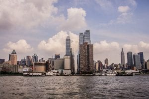 A 2012 image of New York City from the Hudson River, via WIkimedia Commons via Flickr/user:Peretz Partensky. (CCA-BY-2.0).