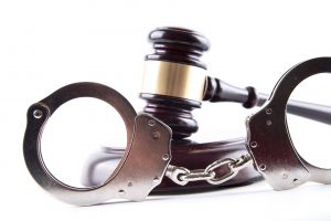 Handcuffs in front of gavel. Image via PublicDomainPictures.net. Photo credit: George Hodan. Listed as public domain.